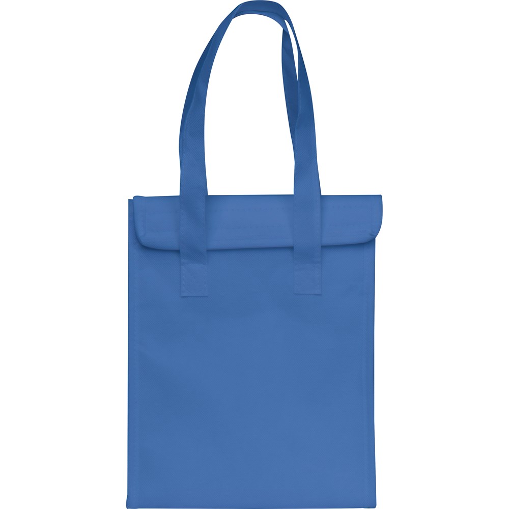 Gefütterte Kühltasche aus Non-Woven mit Aluminiumbeschichtung innnen, Klettverschluss und zwei Tragegriffen. Ihre Werbung drucken wir vorne auf die Tasche.