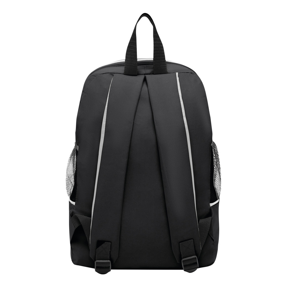Rucksack TEC: Reißverschluss-Vorfach mit Kopfhörer-Kabelausgang, Reißverschluss-Hauptfach, Trageschlaufe, 2 seitliche Netzfächer, gepolsterte Schultergurte