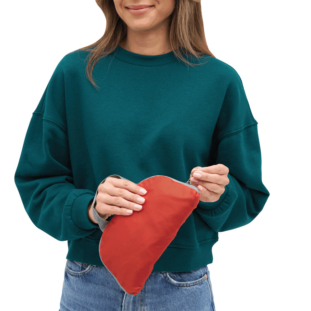Rucksack VOLUNTEER, faltbar: Reißverschluss-Vorfach mit Trageschlaufe, geräumiges Reißverschluss-Hauptfach, 2 seitliche Netzfächer, 2 Reflektor-Etiketten, Trageschlaufe, verstellbare gepolsterte Schultergurte – lässt sich platzsparend zu einer Mini-Tasche zusammenfalten und passt perfekt in die Handtasche