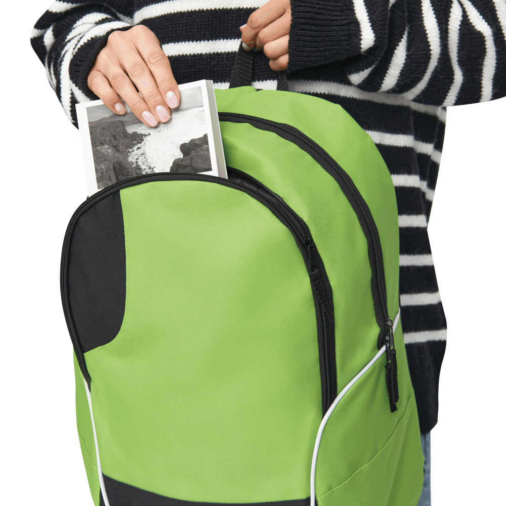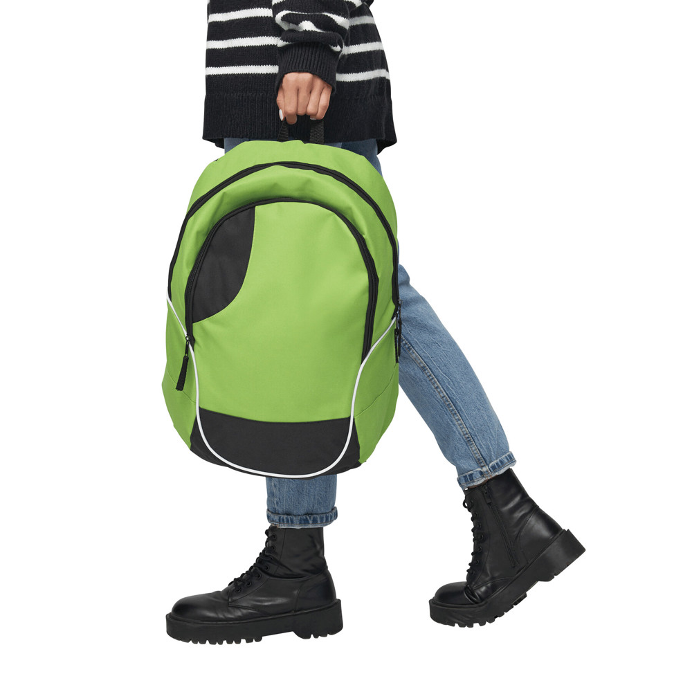 Rucksack CURVE: Reißverschluss-Hauptfach, Reißverschluss-Vorfach, Trageschlaufe, gepolsterte Schultergurte und Rückenbereich