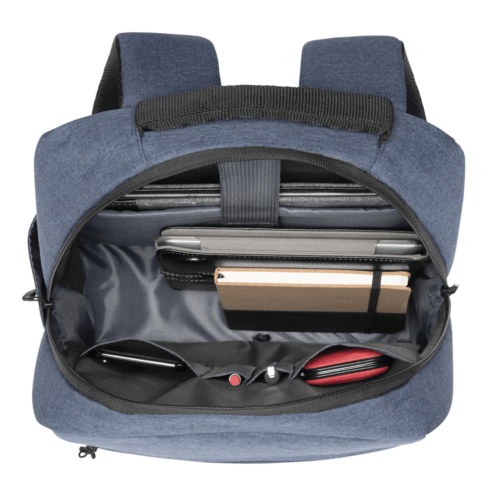 Rucksack JUST: 1 horizontales Reißverschluss-Vorfach, 1 vertikales Reißverschluss-Vorfach, 1 Reißverschluss-Hauptfach mit gepolstertem Innenfach für Laptop oder Tablet und Organizer, seitliches Steckfach, ergonomischer verstärkter Tragegriff, gepolsterte Schultergurte