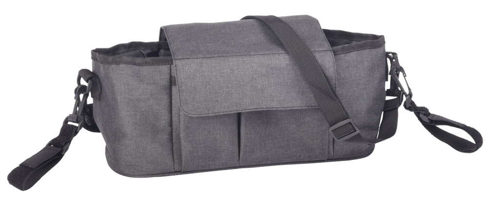 Kinderwagentasche BABY AID: schnelle und problemlose Befestigung am Kinderwagen mit abnehmbaren Klettverschluss-Schlaufen, Hauptfach mit 2 Getränkehaltern und einem Reißverschlussfach, 2 Steckvorfächer, abnehmbarer und verstellbarer Schultergurt