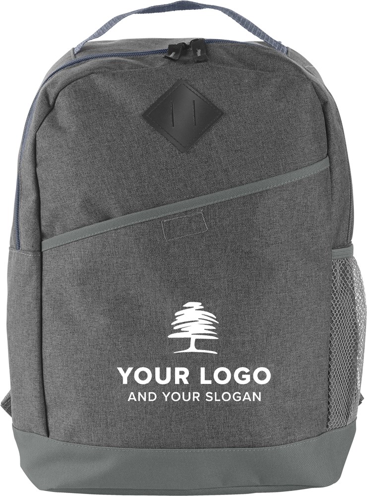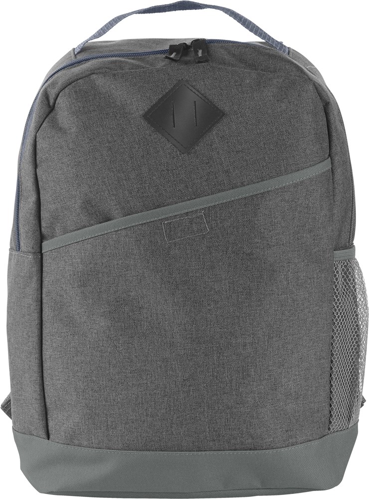 Rucksack aus Polycanvas (600D), mit RV-Hauptfach, Fronttasche mit Klettverschluss, Tragegriff, seitlichem Netzfach, Aufhängeöse und gepolsterten Schultergurten.