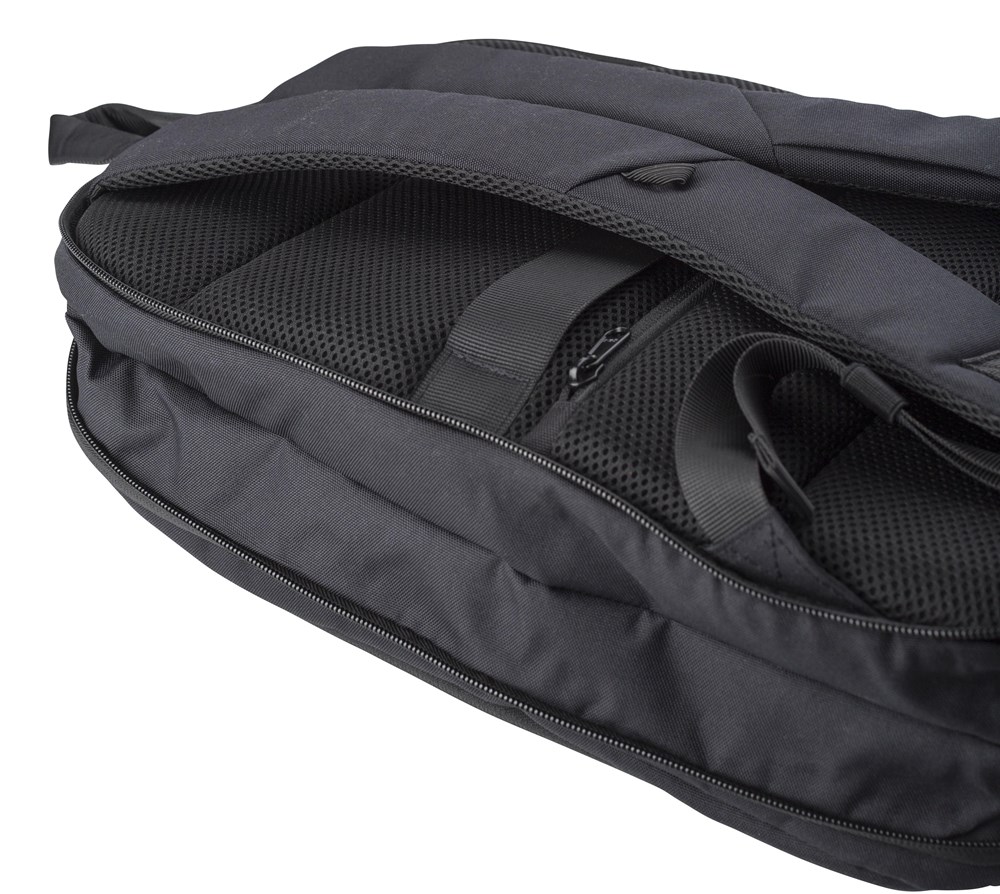 Rucksack aus Polyester (600D) mit Reißverschlusstasche auf der Vorderseite und verstellbaren, gepolsterten Schultergurten. Mit einer Geheimtasche auf der Rückseite und reflektierenden Streifen auf der Vorderseite.