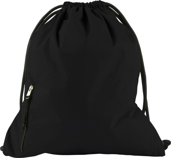 Turnbeutel mit Kordelzug aus Pongee. Die vordere Tasche hat einen Reißverschluss. mehr