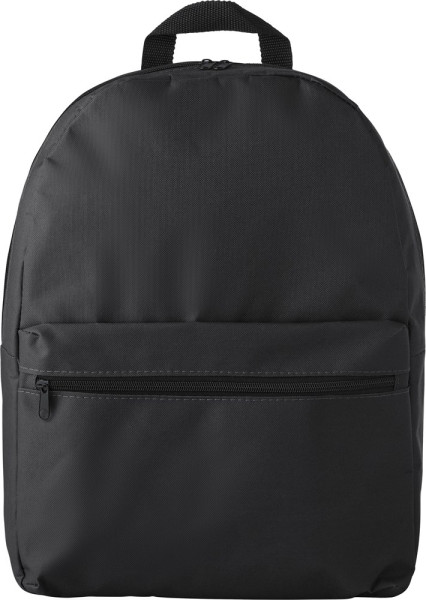 Rucksack aus Polyester (600D) mit Reißverschluss am Hauptfach und Vordertasche. Die Tasche hat verstellbare, gepolsterte Schultergurte.