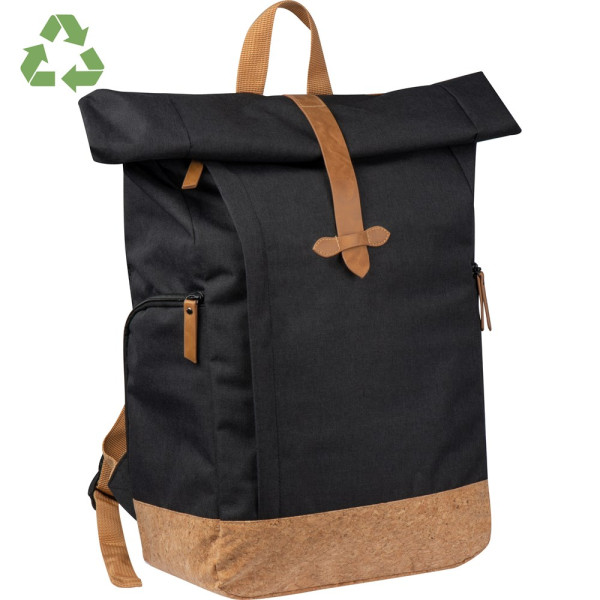 Hochwertige Materialien: Der Rucksack besteht aus recycelten PET-Flaschen und Kork, was zu einer durchdachten Materialnutzung beiträgt.