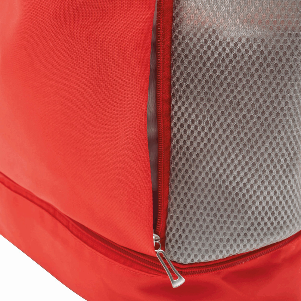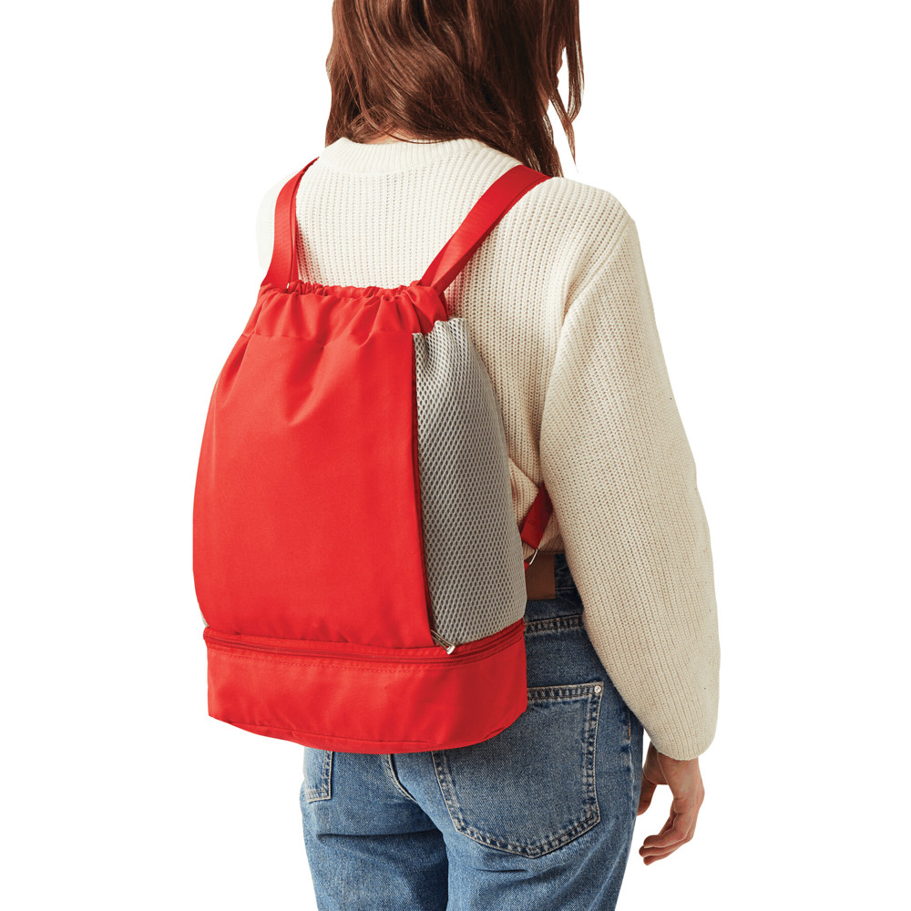 Rucksack TRIP: mit Gurtzug zum Verschließen und als Schultergurte (verstellbar), 1 großes Hauptfach mit 1 Reißverschluss-Innenfach und 2 Einsteckfächer, 2 vertikale Reißverschluss-Vortaschen, 1 Reißverschlussfach am Boden