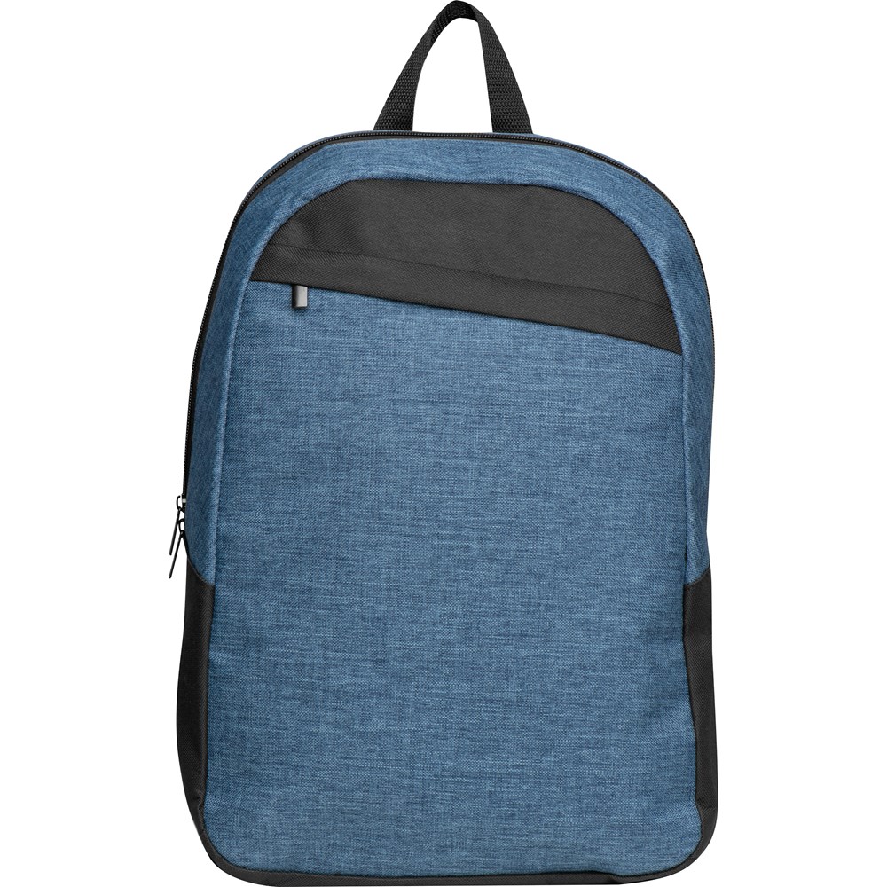 Rucksack aus 600D Polyester mit einem großen Reißverschlussvorfach, einem Innenfach, einer gepolsterten Rückseite sowie gepolsterten verstellbaren Schulterriemen. Ihre Werbung drucken wir auf das Vorfach.