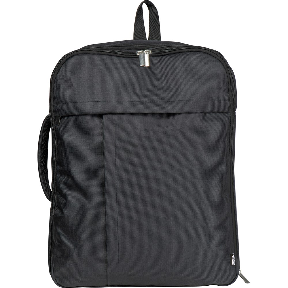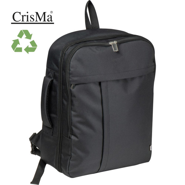 Unser CrisMa Reiserucksack aus RPET bietet ein durchdachtes, vielseitiges Design für unterwegs. Dank des Rundumreißverschlusses kann der Rucksack wie ein Koffer gepackt werden, was ihn ideal für Reisen oder geschäftliche Zwecke macht. Das Laptopfach und das geräumige Vorfach bieten Platz für Elektronik und persönliche Gegenstände, während die gepolsterten Schultergurte bei Bedarf verstaut werden können, um den Rucksack bequem als Tragetasche zu verwenden. Ihre Werbung wird auf die Front gedruckt und sorgt für eine wirkungsvolle Präsentation Ihrer Marke.
