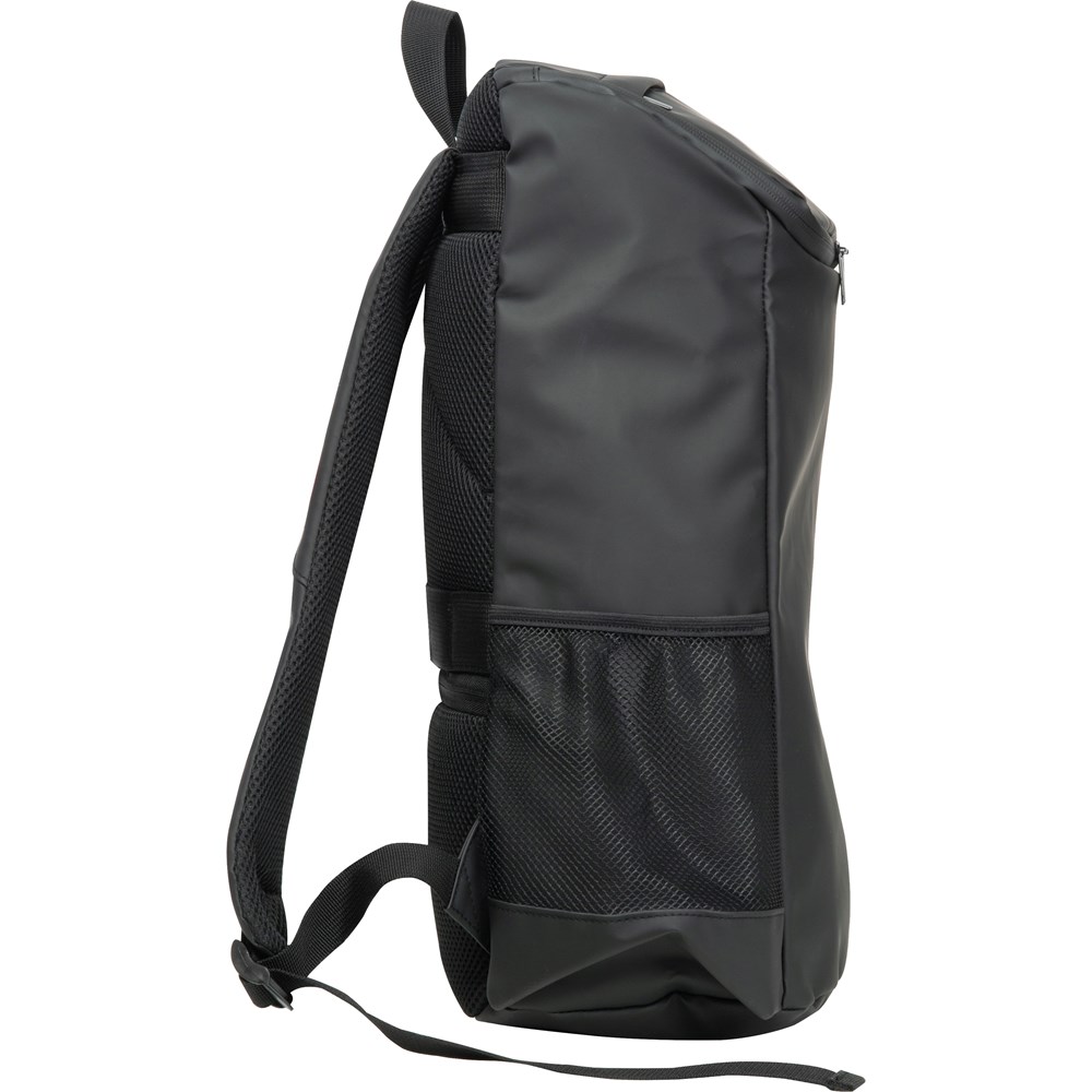 Unser großer Rucksack aus Kunstleder bietet eine stilvolle und funktionale Lösung für den Alltag. Mit viel Stauraum und einem integrierten Tableteinsteckfach ist er ideal für Arbeit, Studium oder Reisen. Schwarz glänzende Reißverschlüsse verleihen dem Rucksack eine elegante Optik, während zwei seitliche Netztaschen als praktische Getränkehalter dienen. Das Anti-Diebstahl-Fach schützt Ihre Wertsachen, und die gepolsterten Schultergurte sorgen für hohen Tragekomfort. Ihre Werbung wird gut sichtbar auf die Vorderseite gedruckt und macht den Rucksack zu einem hochwertigen Werbeträger.