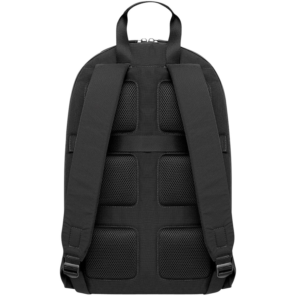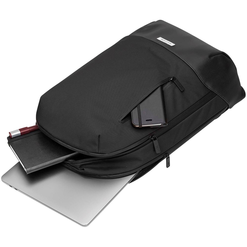 Der Metro Rucksack ist ideal für den mobilen Arbeitsplatz. Er hat ein klares, modernes Design und verfügt dennoch über viele nützliche Funktionen. Er bietet 2 Fächer für einen Laptop und persönliche Gegenstände, eine atmungsaktive Netzrückseite für angenehmen Tragekomfort unterwegs und verstellbare Rucksackgurte. Er ist zudem mit einer Reißverschlusstasche auf der Vorderseite ausgestattet. Außerdem verfügt er über mehrere Innenfächer. Ein Notizbbuchfach, ein sicheres Reißverschlussfach und einen Organizer mit 2 Stiftschlaufen und einem Visitenkartenfach. Ein elektronisches Gerät bis 15" kann ebenfalls sicher verstaut werden.