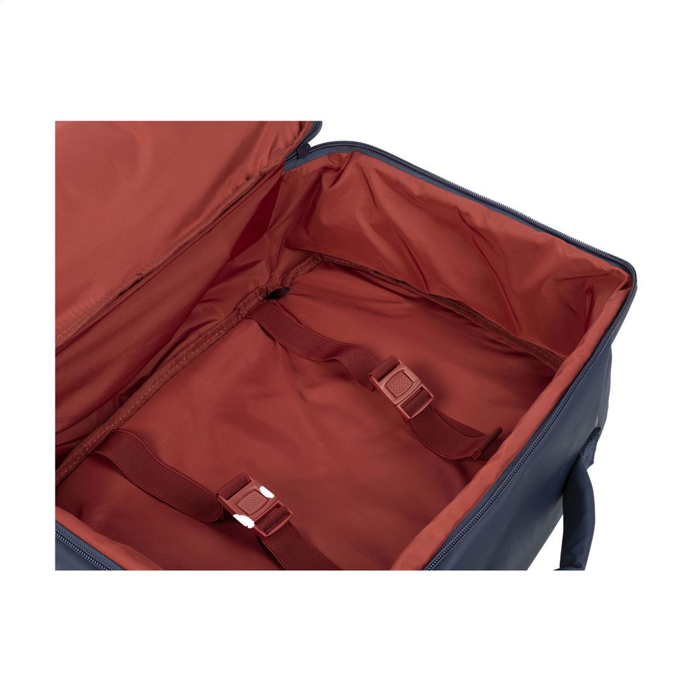 Handgepäckrucksack der italienischen Marke Tucano. Dieser Rucksack erfüllt die Größenanforderungen aller Billigfluggesellschaften. Hergestellt aus regenbeständigem, harzbeschichtetem Material, das aus recyceltem Kunststoff hergestellt wurde, darunter 23 recycelte PET-Flaschen. Auch die Reißverschlüsse sind regenbeständig. Dieser reisefreundliche Kabinenrucksack verfügt über ein geräumiges Innenfach für Kleidung und Accessoires, ein großes Reißverschlussfach auf der Vorderseite und ein Seitenfach für einen Regenschirm oder eine Wasserflasche. Mit einem gepolsterten Fach auf der Rückseite für Laptops bis zu 15,6 Zoll oder ein MacBook Pro 16 Zoll. Auf der Rückseite befindet sich ein verstecktes Reißverschlussfach zur Aufbewahrung persönlicher Dokumente. Die Tasche ist vollständig gefüttert. Dank der gepolsterten Schultergurte und der beiden Griffe, einer oben und einer an der Seite, lässt sich diese Tasche immer bequem tragen. Dieser Rucksack wurde so konzipiert, dass er den Kabinenabmessungen aller Fluggesellschaften entspricht. Er passt unter den Sitz im Flugzeug und ist somit der ideale Begleiter auf Flugreisen. Fassungsvermögen ca. 23 Liter.