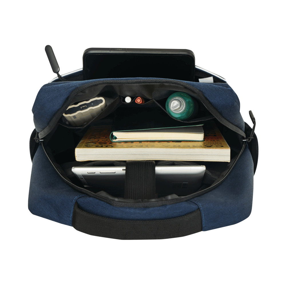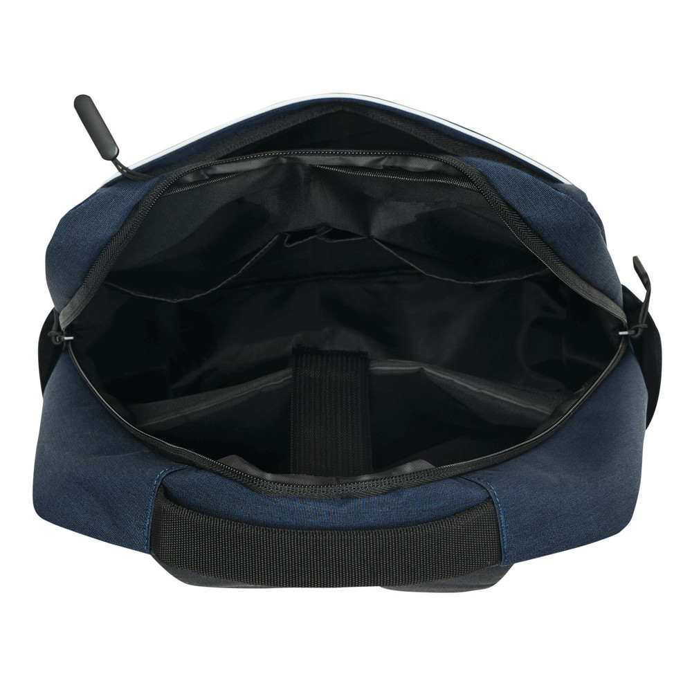 Rucksack GHENT: aus recyceltem Polyester (RPET), 1 Reißverschluss-Vorfach mit Reflektorstreifen, Reißverschluss-Hauptfach mit gepolstertem Innenfach für Laptop oder Tablet, Organizer mit 4 Steckfächern, 2 seitliche Einsteckfächer, gepolsterter Tragegriff, gepolsterte und verstellbare Schultergurte, Gurt als Reporterfunktion auf der Rückseite
