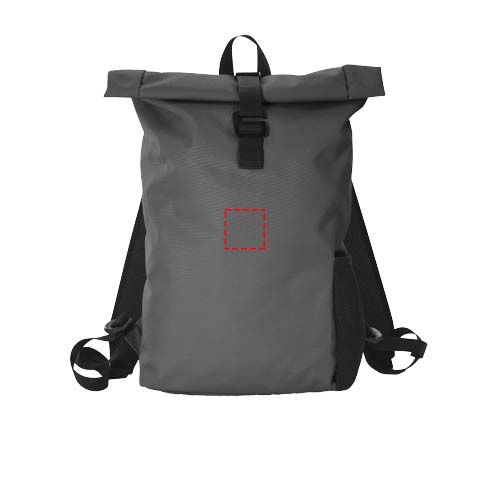 Der Vanguard Rolltop Rucksack aus 240 g/m² recyceltem Polyester (rPET) wurde entwickelt, um Ihren Alltag mit einfacher Handhabung und hoher Funktionalität zu unterstützen. Ein gepolstertes Laptopfach sorgt für optimalen Schutz, zusätzliche Polsterungen am Rücken und an der Unterseite erhöhen den Tragekomfort. Der schwarze Metallschnallenverschluss garantiert sicheres Verstauen, während der praktische Tragegriff oben und die verstellbaren, gepolsterten Schultergurte für eine individuelle Passform sorgen. Eine seitliche Netztasche ermöglicht schnellen Zugriff auf wichtige Utensilien, und ein Trolleyband auf der Rückseite erleichtert das Reisen. Größe 58 × 37 × 9,5 cm. Hergestellt in Europa.