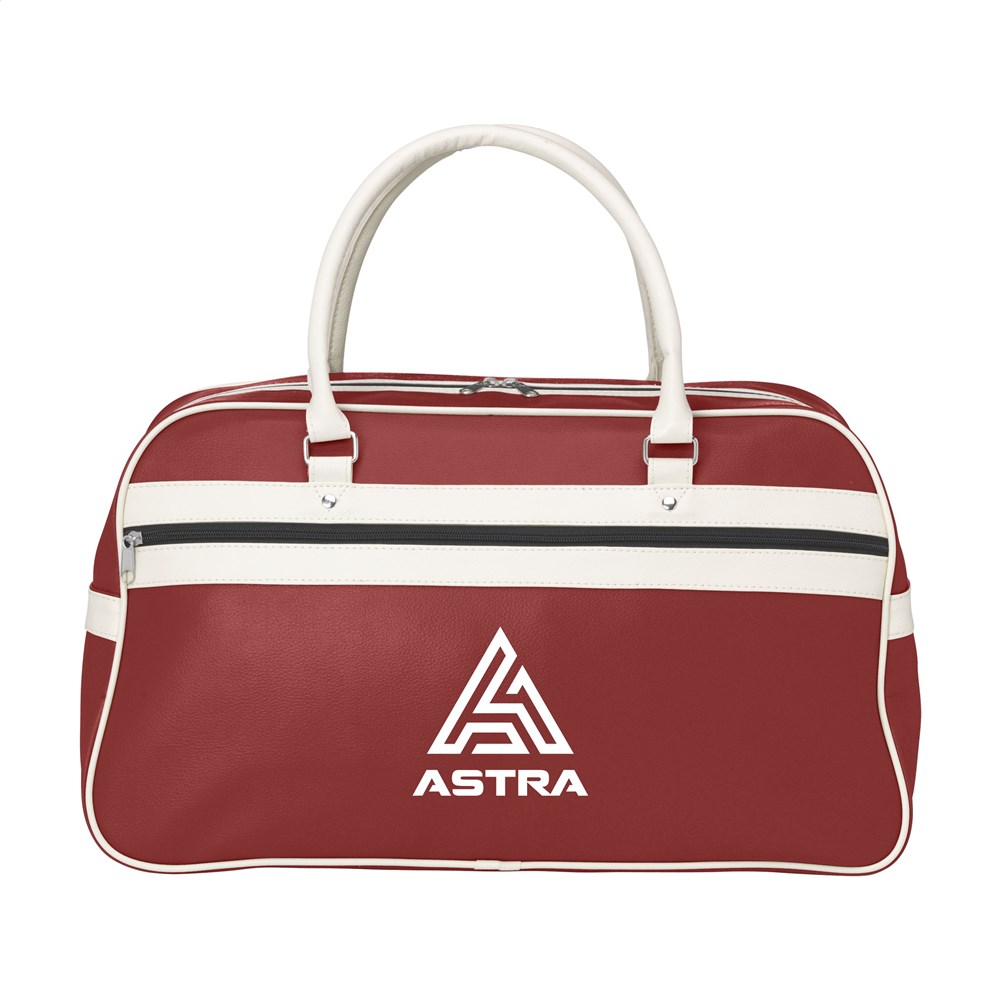 PVC/PU Sporttasche im 70er Jahre-Look mit gefütterter Innenseite, Hauptfach und Reißverschlussfach, 2 stabilen Handgriffen, Einlegeboden und Schutznoppen. Stilvoll verarbeitet mit hochwertigen Materialien, die eine extra lange Lebensdauer garantieren. Fassungsvermögen ca. 21,5 Liter.