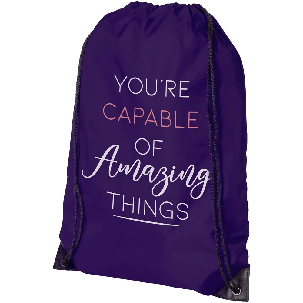 Der Oriole Sportbeutel ist ein ideales Giveaway, um Ihre Marke oder Marketingkampagne zu bewerben. Dieser leichte Rucksack ist budgetfreundlich, lässt sich leicht auf dem Rücken oder über der Schulter tragen und bietet genügend Fläche für ein Logo oder andere Botschaften. Dank des Kordelzugs lässt er sich leicht öffnen und schließen, und das 210D-Polyestermaterial ist robust und langlebig.