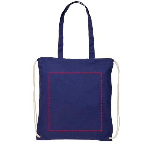 Multifunktionaler Baumwolltsportbeutel mit langen Griffen und Kordelzug, der als Tasche oder Rucksack getragen werden kann. Großes Hauptfach mit Kordelzugverschluss. Mit zwei herunterklappbaren Griffen von 31 cm Länge. Kapazität: 6 l, für bis zu 5 kg Gewicht.