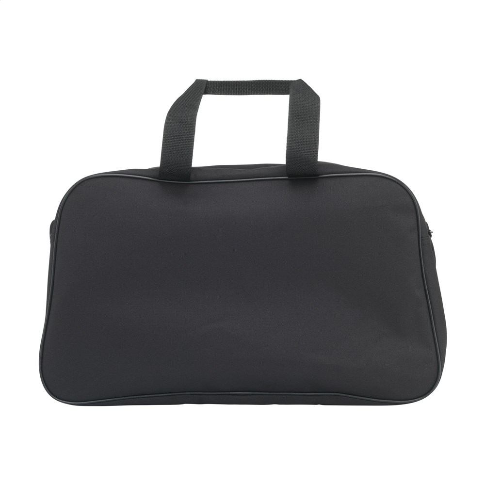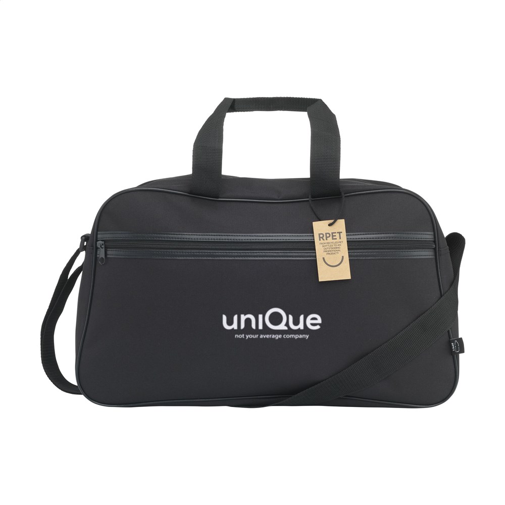 Geräumige Sport-/Reisetasche aus robustem 600D RPET-Polyester. Mit viel Stauraum, einem Reißverschlussfach auf der Vorderseite, 2 Griffen und verstellbaren Schulterriemen. GRS-zertifiziert. Recyceltes Material insgesamt: 98%. Fassungsvermögen ca. 35 Liter.