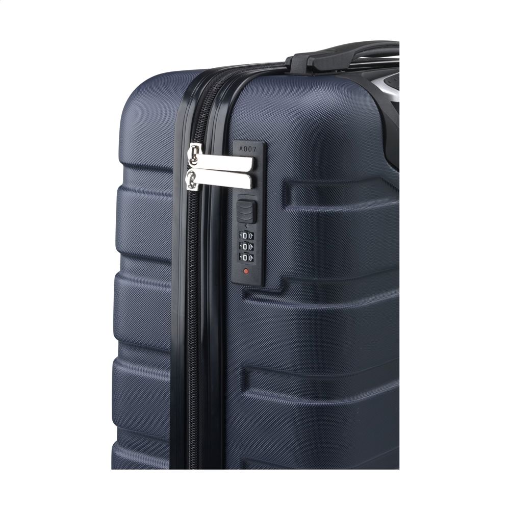 Trendiger, leichter Trolley aus 100% GRS-zertifiziert recyceltem ABS. Die Innenseite ist mit recyceltem 210D-Polyester ausgekleidet. Mit geräumigem Hauptfach, 4 Rädern, erweitertem Metalgriff und Zahlenschloss. GRS-sertifisert. Totalt resirkulert materiale: 52%. Fassungsvermögen ca. 30 Liter.