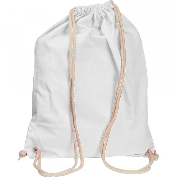 Gymbag aus Baumwolle (Grammatur 140g/m²). Ideal für Sportutensilien oder für unterwegs. Hiermit werden Sie zum ständigen Begleiter. Ihre Werbung drucken wir auf eine Seite.