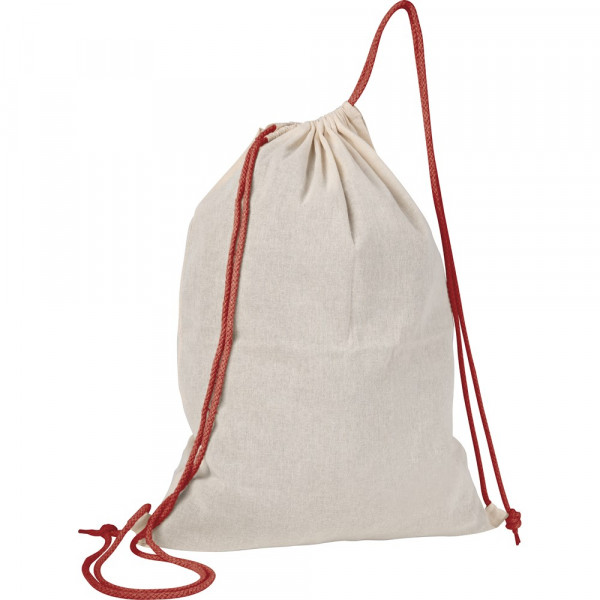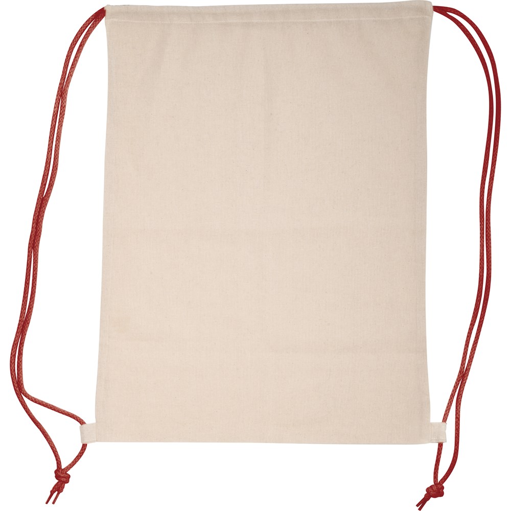 Oeko-Tex® STANDARD 100 zertifizierter Sportbeutel aus Baumwolle (Grammatur 140 g/m²) mit extra dicken Kordelzügen. Ihre Werbung drucken wir auf eine Seite der Tasche.
