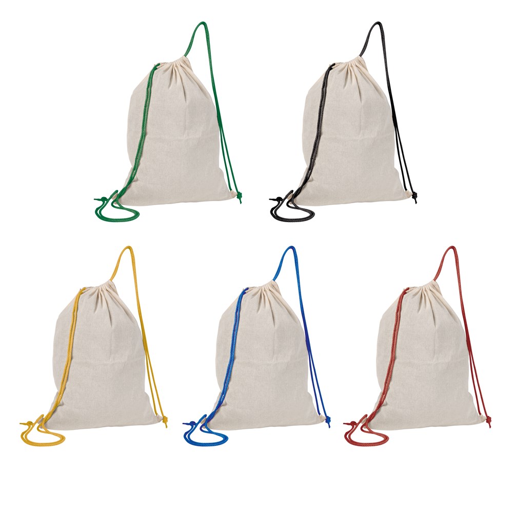 Oeko-Tex® STANDARD 100 zertifizierter Sportbeutel aus Baumwolle (Grammatur 140 g/m²) mit extra dicken Kordelzügen. Ihre Werbung drucken wir auf eine Seite der Tasche.