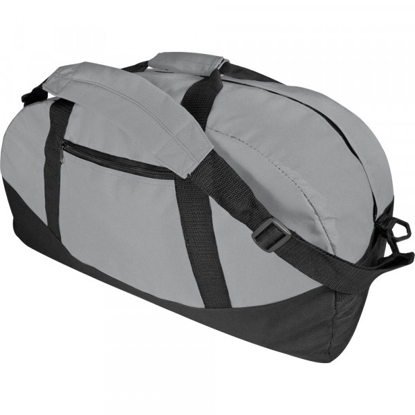 Robuste Sporttasche aus 600D Polyester, großes Hauptfach und kleines Vorderfach. Gepolsterter, stufenlos verstellbarer Gurt. Ihren Werbeaufdruck platzieren wir auf dem Vorderfach.