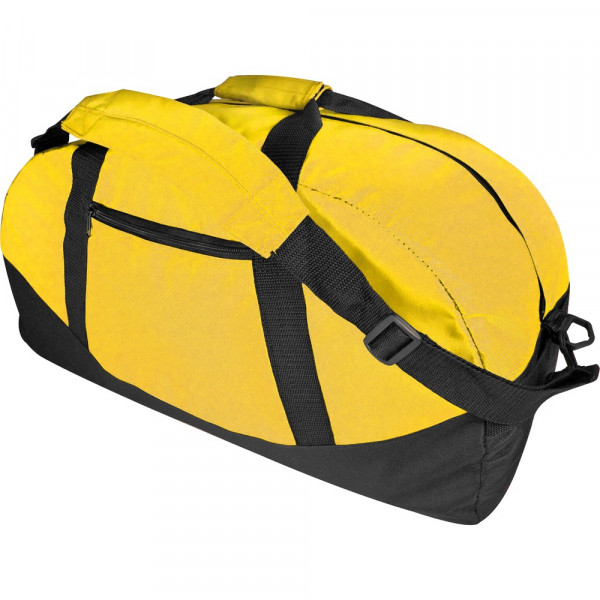 Robuste Sporttasche aus 600D Polyester, großes Hauptfach und kleines Vorderfach. Gepolsterter, stufenlos verstellbarer Gurt. Ihren Werbeaufdruck platzieren wir auf dem Vorderfach.