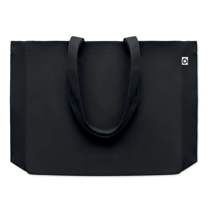 Canvas Einkaufstasche oder Strandtasche aus 50% Baumwolle/50% recycelter Baumwolle mit langen Tragegriffen und Bodenfalte. 280 g/m².
