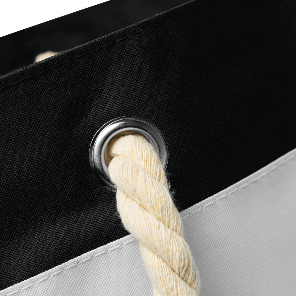 Strandtasche SYLT – in maritimer Streifen-Optik: geräumiges Hauptfach mit Klettverschluss verschließbar, innen extra Reißverschluss-Tasche für Wertgegenstände oder anderes, 2 Kordelhenkel aus Baumwolle mit Metallösen