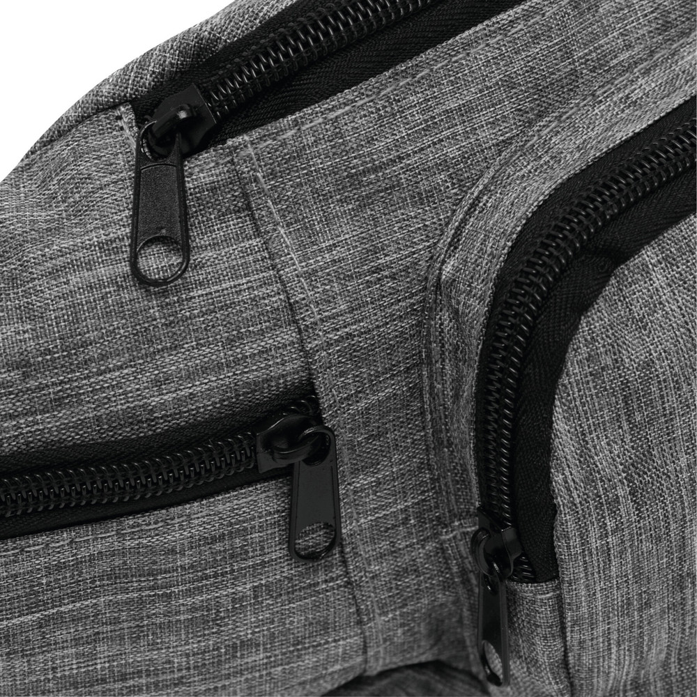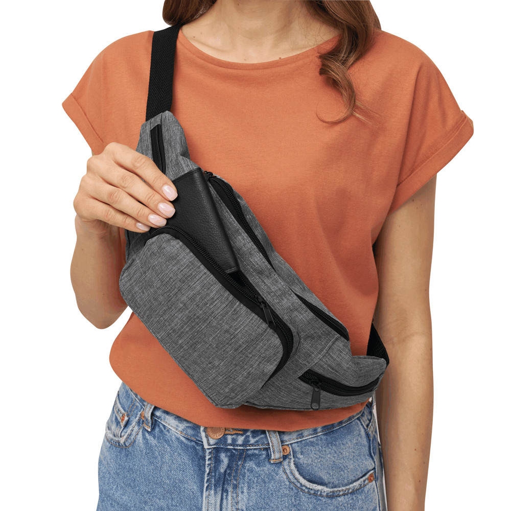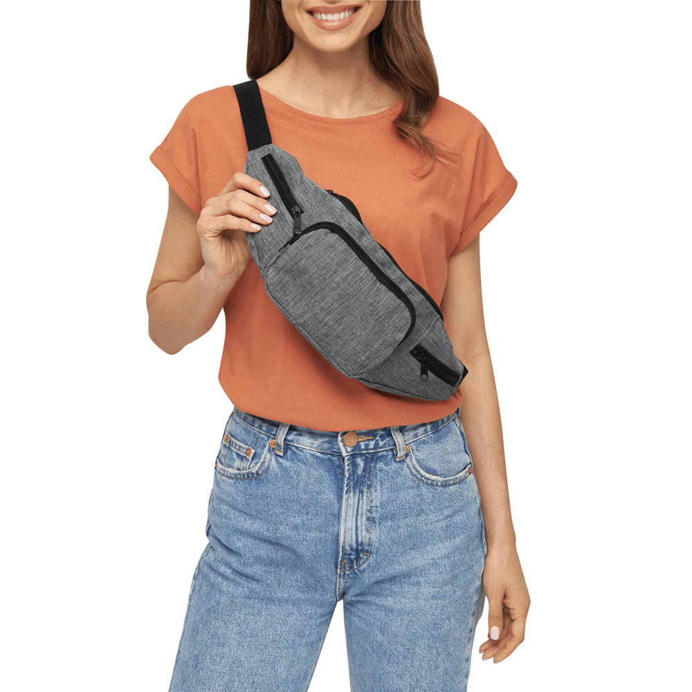 Gürteltasche QUAD: geräumiges Reißverschluss-Hauptfach, 1 Reißverschluss-Vortasche, 2 kleine, seitliche Reißverschluss-Fächer, verstellbarer Hüftgurt mit Schnappverschluss