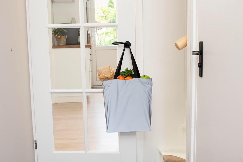 Einkaufstasche aus Polyester (100D) mit zwei langen Griffen. Die Tasche ist reflektierend.
