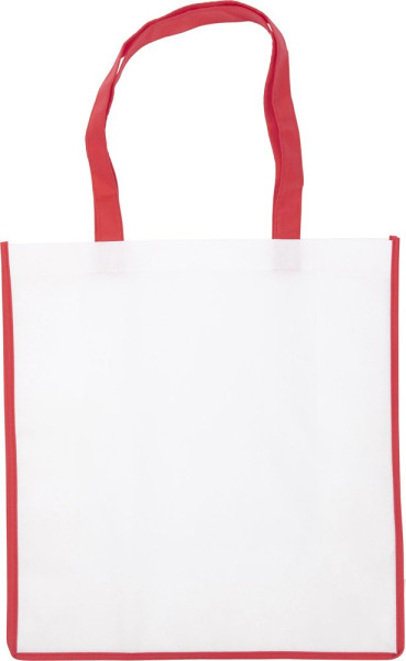Einkaufstasche aus Non-Woven, inklusive 13 cm Boden- und Seitenfalte, farbige Applikationen.