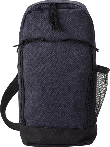 Große, gekreuzte Umhängetasche aus Polyester (600D) mit einem verstellbaren Riemen. Ein großes Fach, eine Fronttasche mit Reißverschluss und eine Netztasche an der Seite.