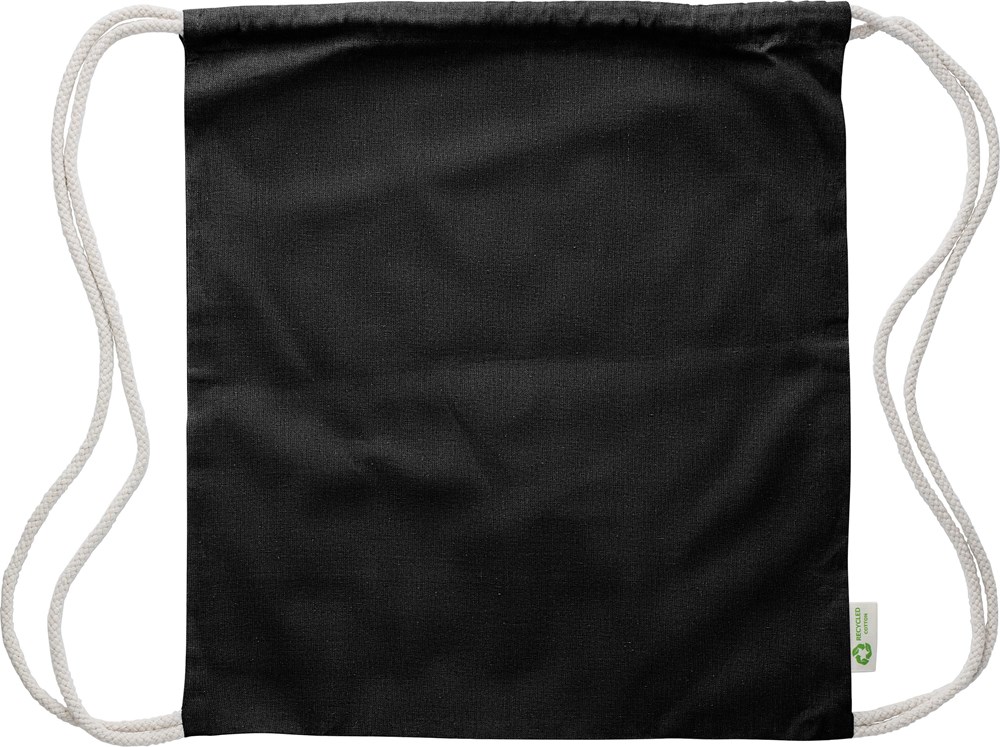 Kordelzugtasche aus recycelter Baumwolle in Uni-Farbe. Feste Schnüre und verstärkte Ecken. Hergestellt aus 100% recycelter Baumwolle.