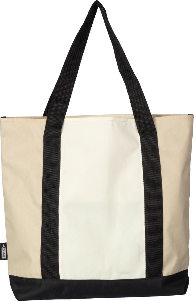 rPET (600D) Tragetasche mit einer tasche auf der Oberseite und einer offenen Tasche auf der Vorderseite. Mit langen Griffen.