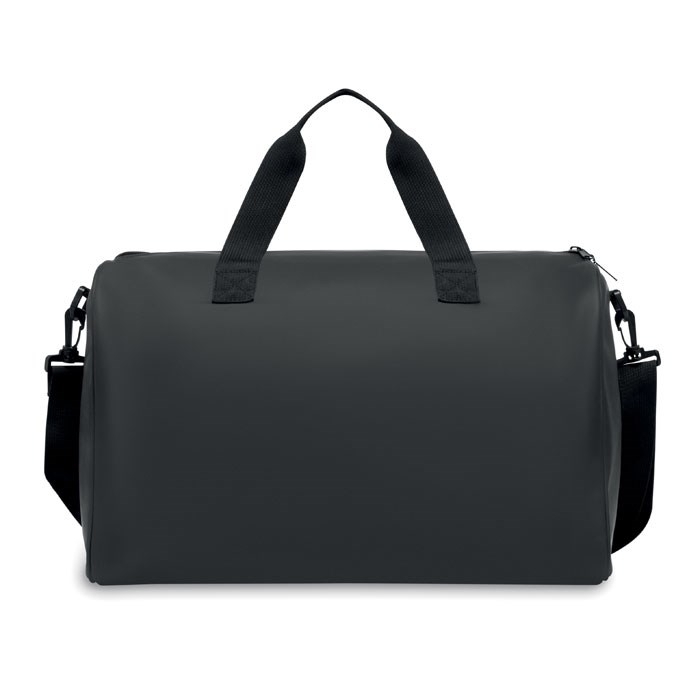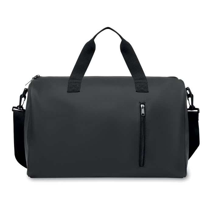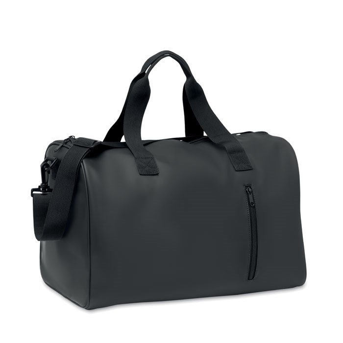 Sport- oder Reisetasche aus weichem PU mit schaumstoffverstärktem Boden. Hauptfach und Fronttasche mit Reißverschluss. Futter aus 210D RPET-Polyester. 2 Griffe und verstellbarer, abnehmbarer Schultergurt.