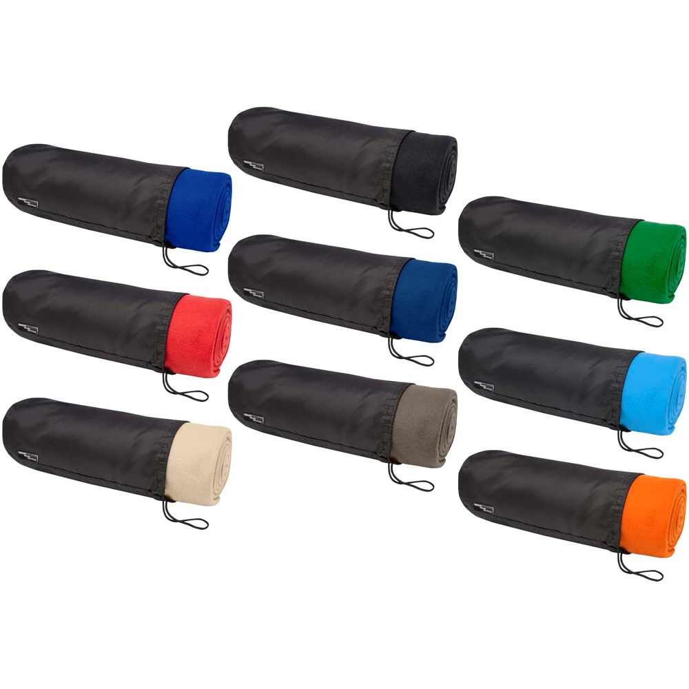 GRS zertifizierte RPET Decke aus Polar Fleece, für den Innen- und Außenbereich geeignet. Wird mit einer 190T RPET-Tragetasche mit Kordelzugverschluss geliefert. Verpackt in einem recycelten Polybeutel. Beutelgröße: Länge 34 cm, Durchmesser 13 cm.