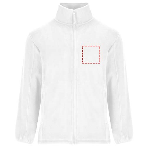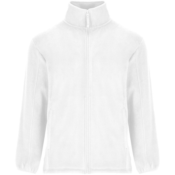 Fleecejacke mit gefüttertem Stehkragen und entsprechend verstärkten und verdeckten Nähten. Eingespritzter Reißverschluss mit passendem Zipper aus Stoff. Seitentaschen. Ärmelbündchen mit Gummizug. Unterer Saum mit seitlichem Reißverschluss. Herausnehmbares Etikett. Das Modell ist 185 cm groß und trägt Größe M.