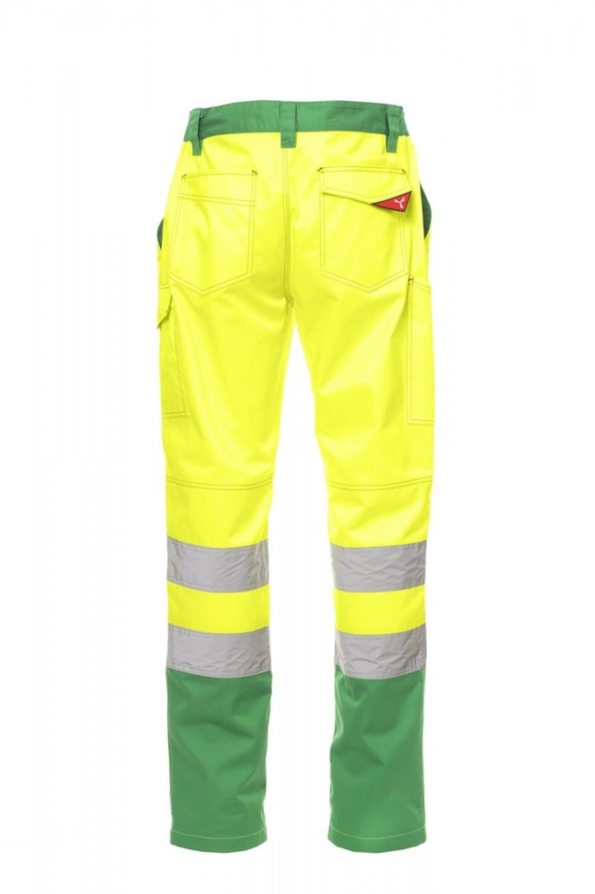 Unsere ganzjährig tragbare, zweifarbige und gut sichtbare Herrenhose CHAT mit Reflexstreifen, seitlich dehnbarem Bund und Gürtelschlaufen, Hosenschlitz mit Reißverschluss und Knopf aus Kunststoff, zwei klassisch geschnittenen Vordertaschen, einer Seitentasche mit LOCK SYSTEM, Zollstocktasche, einer offenen Gesäßtasche und einer mit Patte und Klettverschluss. Nähte in Kontrastfarbe, Dreifachnähte im Schritt und am Innenbein.