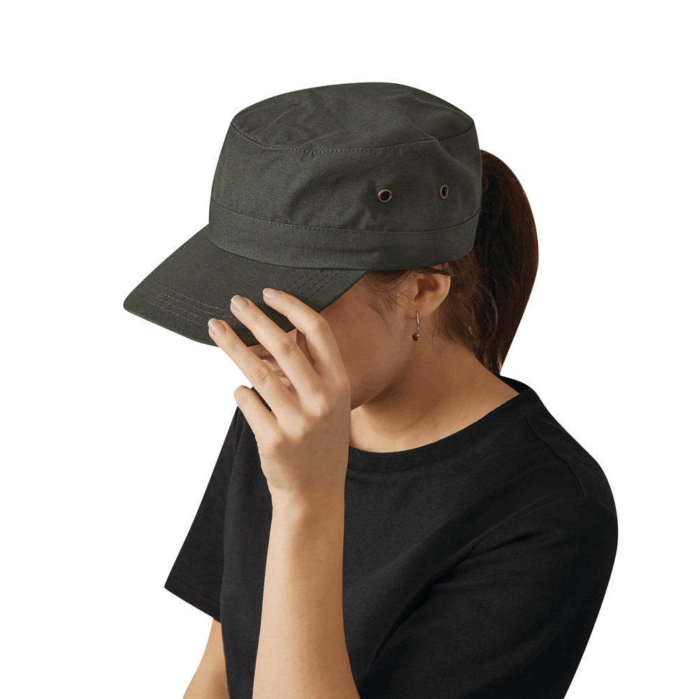 Military-Cap SOLDIER: lässige Ausführung im Armee-Stil, aus robuster Baumwolle, 4 seitliche Metall-Luftlöcher und größenverstellbarer Metallverschluss am Hinterkopf