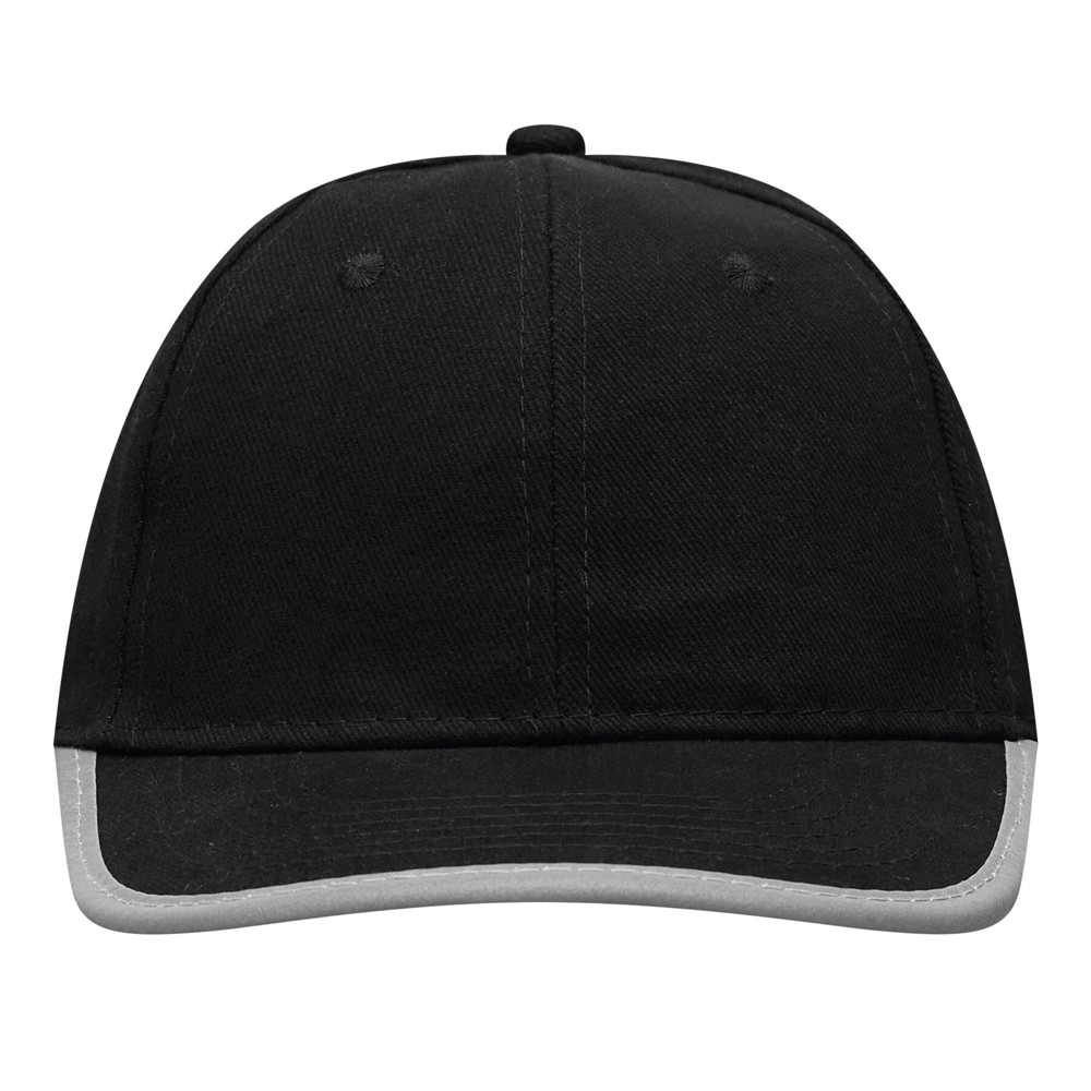 6-Panel-Baseball-Cap DETECTION: mit reflektierendem Band an Schirm und hinten auf dem Klettverschluss, verstärkte Frontsegmente, 6 gestickte Luftlöcher, Knopf, 100% Baumwolle (heavy-brushed)