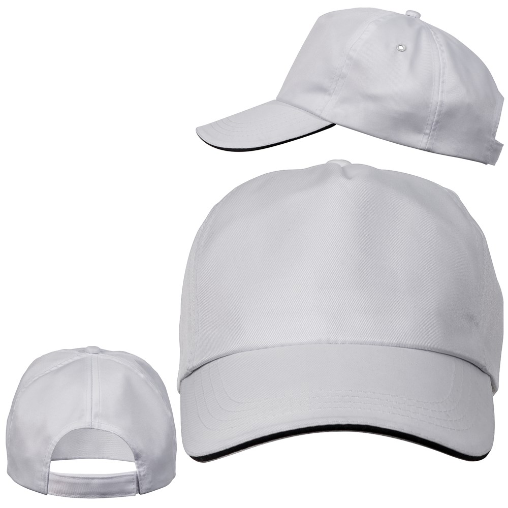 Baseballcap aus Polyester mit Sandwich und Klettverschluss. Ihre Werbung drucken wir mittig auf die Stirn.