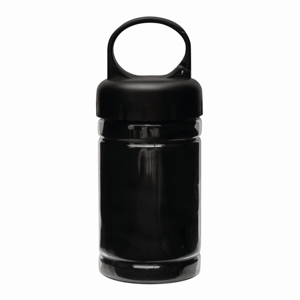 Kühlhandtuch CHILLING: in transparenter Dose, integrierter Sonnenschutzfaktor, für einen lang anhaltenden Kühleffekt Handtuch mit Wasser befeuchten und schleudern oder Wasser zur Dose hinzugeben und gut schütteln, Deckel mit Karabinerhaken (der Karabiner ist NICHT als Sicherung beim Klettern geeignet) - ideal für Fitness und Sportaktivitäten