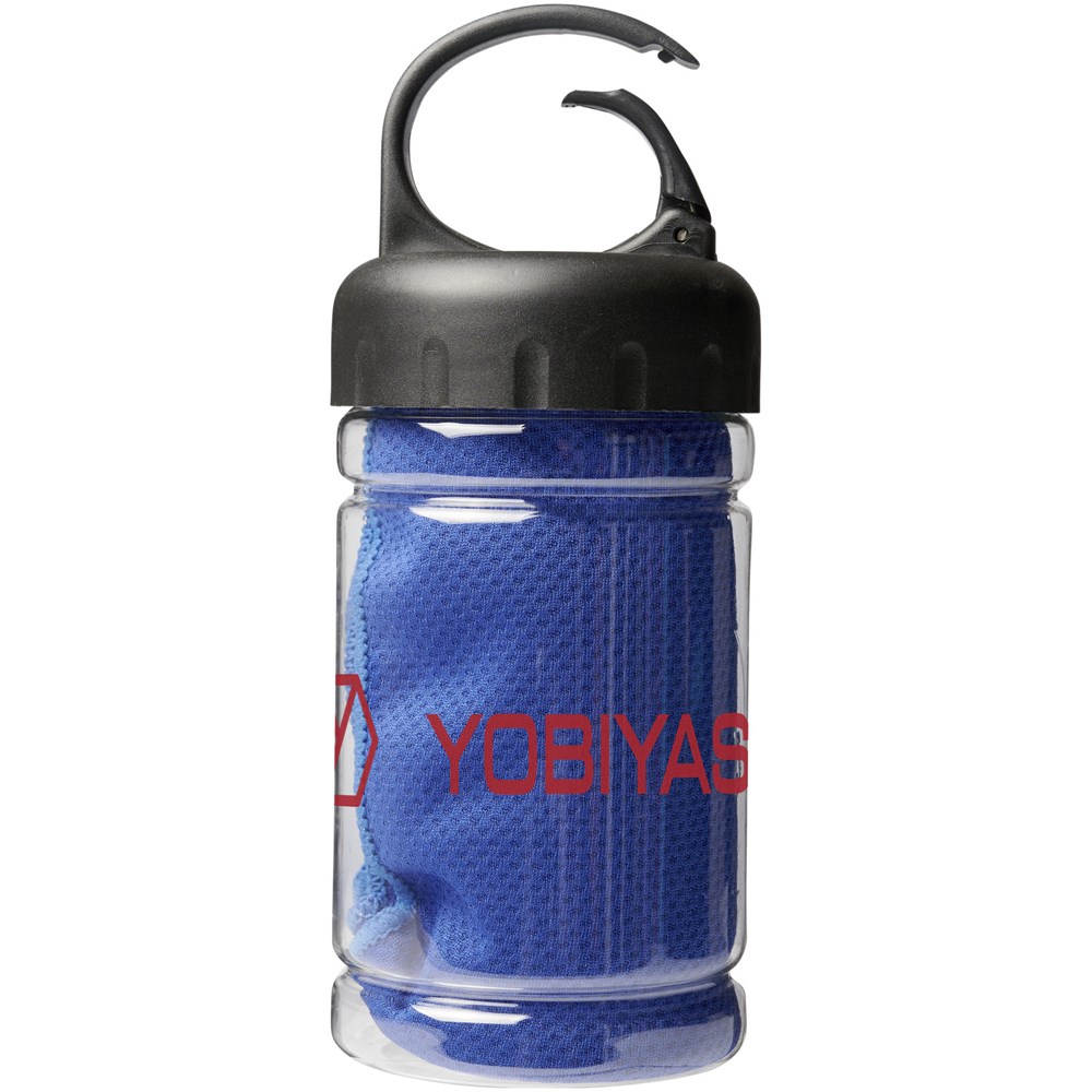 Schnell einziehendes, schnell trocknendes und waschbares kühlendes Handtuch aus starkem und strapazierfähigem Polyester, perfekt um während des Trainings oder bei allen Outdoor-Aktivitäten kühl zu bleiben. Wird in einem PET-Behälter mit Tragegriff und integriertem Karabinerhaken für einfaches Tragen geliefert. Erhältlich in 5 frischen Farben. Große Deko-Logofläche auf dem Behälter, Dekoration auch auf dem Kühlhandtuch selbst möglich. Größe 30 x 80 cm.