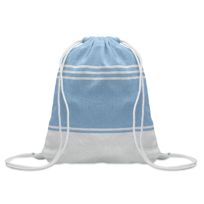 Strandtuch/Hammamtuch im passenden Beutel mit Kordelzug. 70% recycelte Baumwolle und 30% recycelter Polyester 180 g/m². Maße Tuch: 90x160 cm.