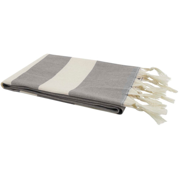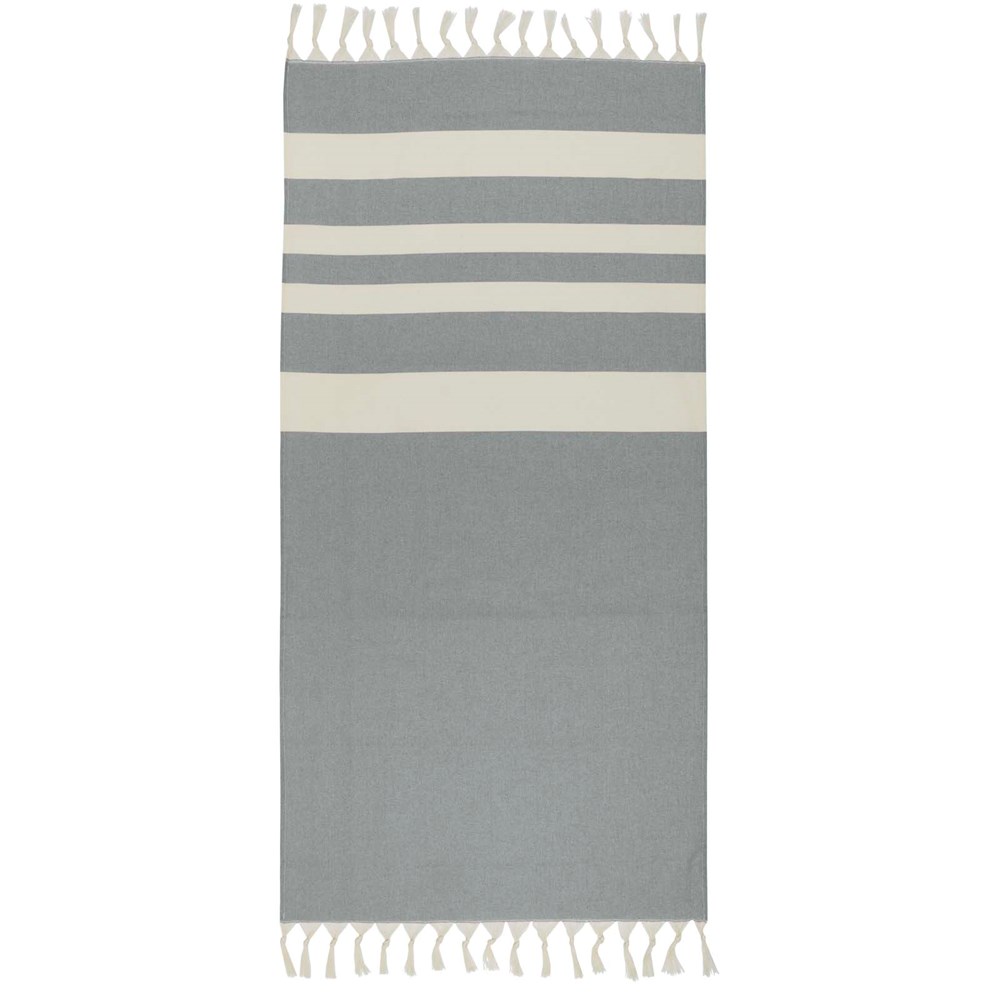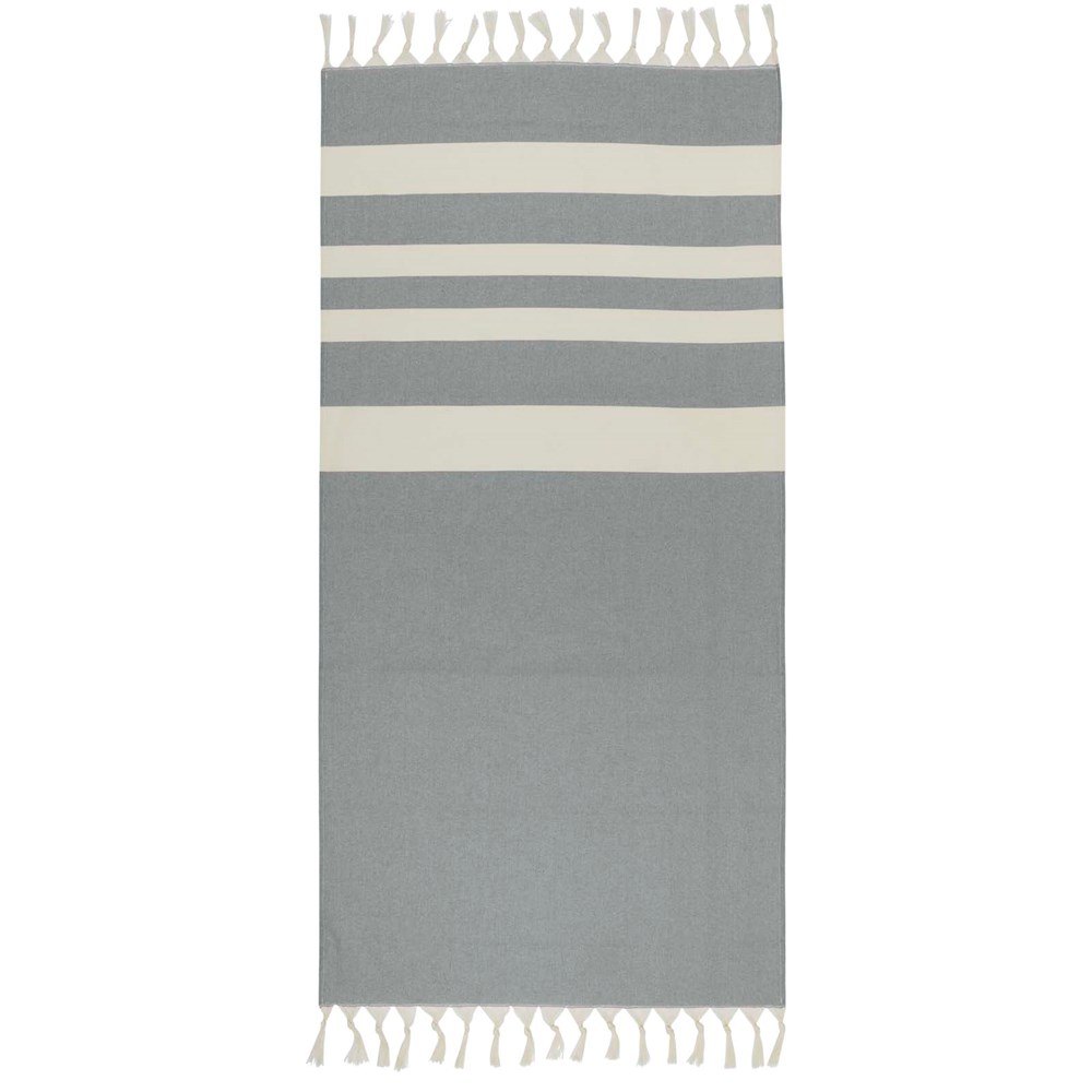 Das Anders Hammamtuch garantiert mit seinen großzügigen Maßen (147 × 75,5 cm) luxuriösen Komfort und sorgt für eine großzügige Abdeckung, egal ob Sie am Pool faulenzen oder einen Tag am Strand verbringen. Das Handtuch hat elegante Quasten an beiden Enden und besteht aus 30 % Baumwolle, 35 % GRS-zertifizierter Recyclingbaumwolle und 35 % GRS-zertifiziertem Recyclingpolyester, 180 g/m².
