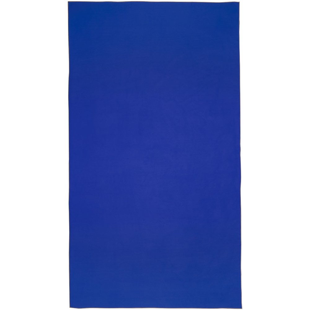 Die Pieter Sporthandtuch saugt sehr gut auf, ist leicht, trocknet schnell und der Stoff ist langlebig und extrem weich. Gefaltet und mit dem Gummiband gesichert ist das Handtuch klein und handlich, gut für Fitnessstudio, Schwimmbad oder für Rucksacktouren und Camping. Das Handtuch hat eine Größe von 180 × 100 cm und besteht zu 90% aus GRS-recyceltem Polyester und zu 10% aus Nylon. Es kann bei 40 °C in der Maschine gewaschen werden. Das Handtuch wird mit einem Aufbewahrungsbeutel (25 × 8,5 cm) aus recyceltem PET-Kunststoff geliefert, der sich hervorragend für den Aufdruck eines Logos eignet.