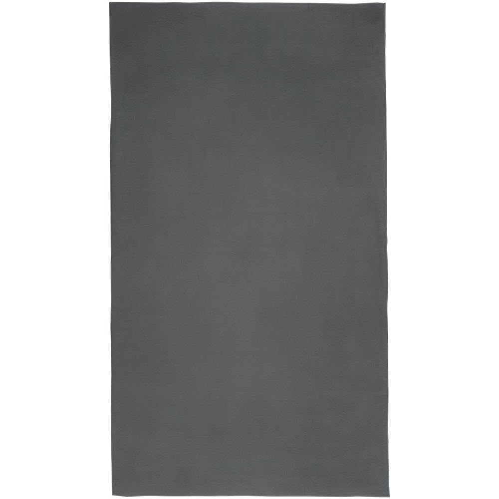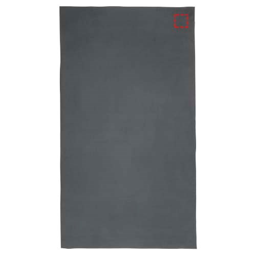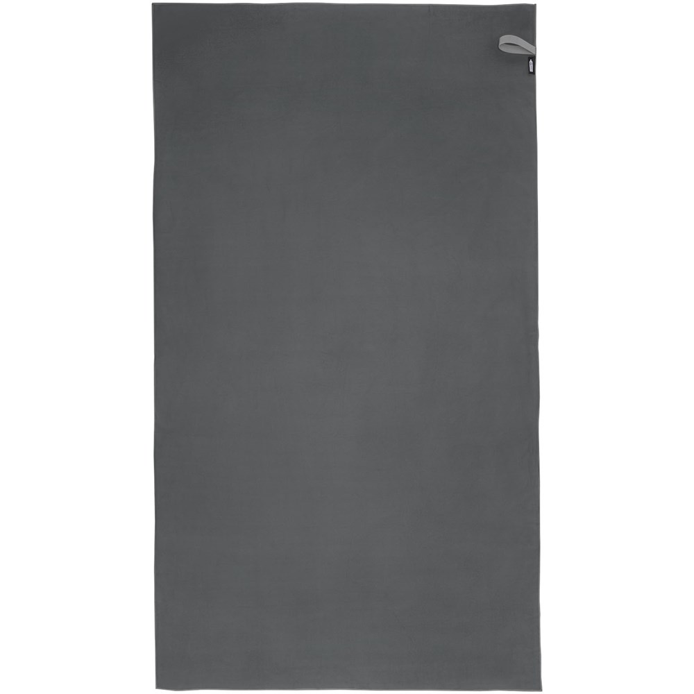 Die Pieter Sporthandtuch saugt sehr gut auf, ist leicht, trocknet schnell und der Stoff ist langlebig und extrem weich. Gefaltet und mit dem Gummiband gesichert ist das Handtuch klein und handlich, gut für Fitnessstudio, Schwimmbad oder für Rucksacktouren und Camping. Das Handtuch hat eine Größe von 180 × 100 cm und besteht zu 90% aus GRS-recyceltem Polyester und zu 10% aus Nylon. Es kann bei 40 °C in der Maschine gewaschen werden. Das Handtuch wird mit einem Aufbewahrungsbeutel (25 × 8,5 cm) aus recyceltem PET-Kunststoff geliefert, der sich hervorragend für den Aufdruck eines Logos eignet.